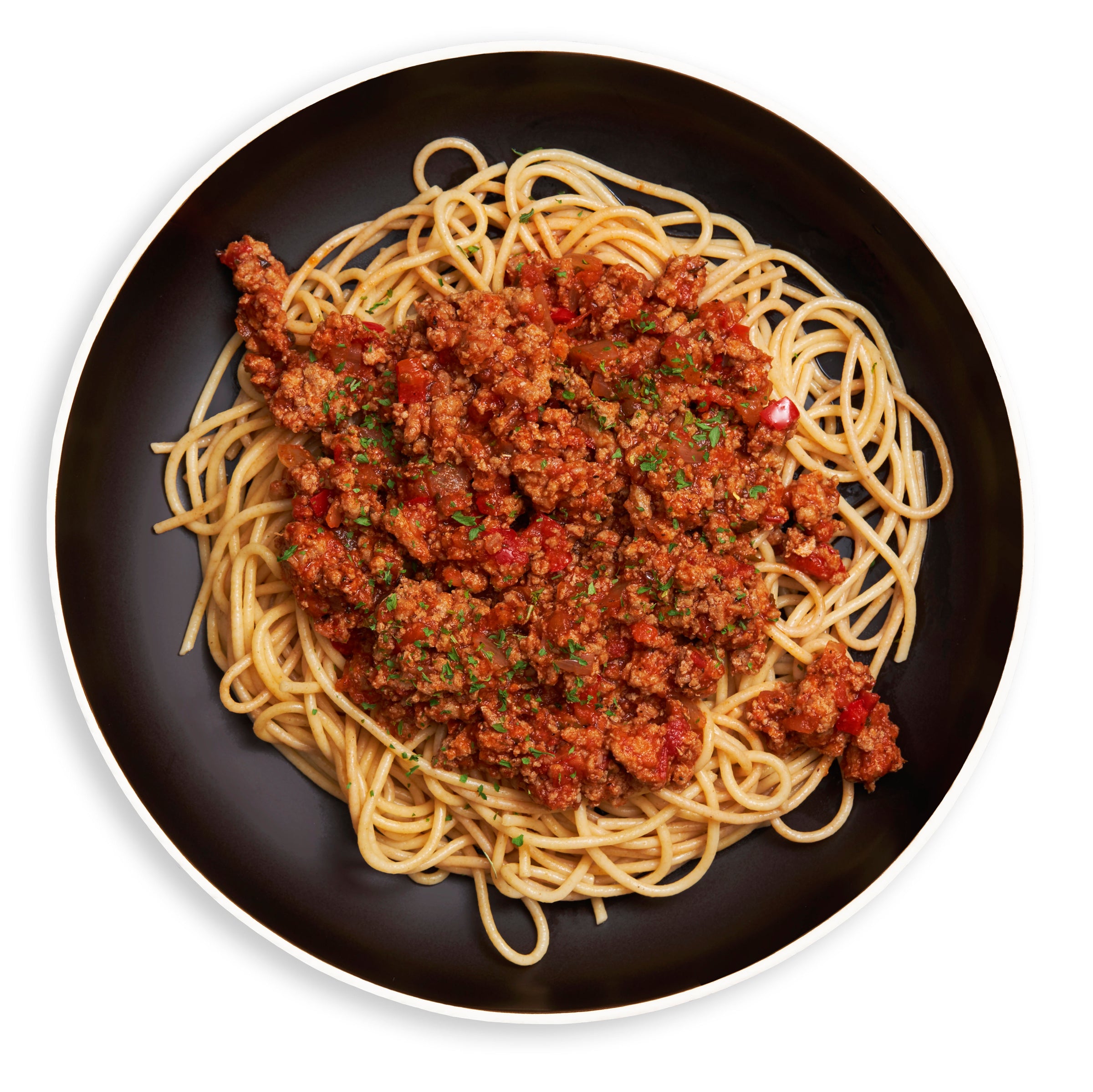 Lean ground turkey, cooked and marinated in a marinara sauce, blended with onions, bell peppers, minced garlic and spices, over a gluten free pasta.